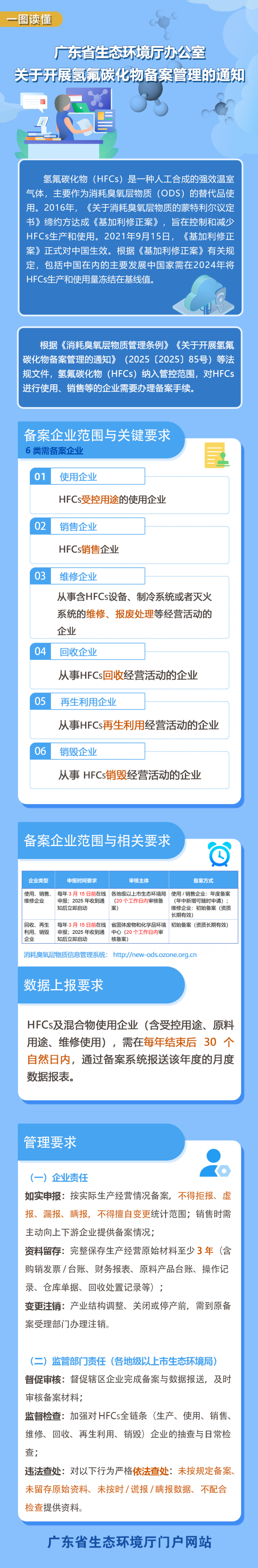 【一圖讀懂】關(guān)于開展氫氟碳化物備案管理的通知發(fā)表時間:2025-08-15 11:53來源:廣東省生態(tài)環(huán)境廳 |